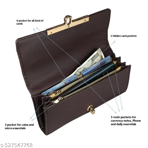 Name : ALSU Women’s Brown Trendy Hand Clutch Wallet Purse with 4 card slots and phone pocket